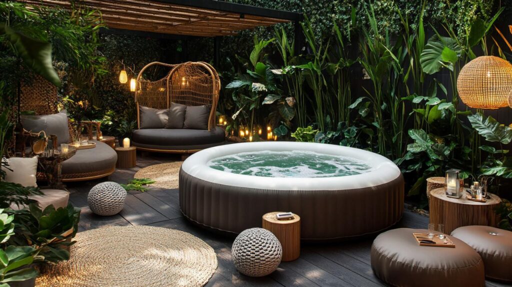 Concernant le massage, deux technologies principales existent sur le marché. Les spas à bulles, les plus courants, diffusent de l'air à travers de nombreux orifices placés au fond du bassin, créant un effet bouillonnant agréable avec 80 à 170 diffuseurs selon les modèles. Les spas à jets massants, plus haut de gamme, propulsent de l'eau sous pression via des buses orientables pour un massage plus ciblé et intense, similaire aux spas rigides traditionnels.